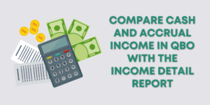 Learn how to compare cash and accrual income in QuickBooks Online with the Income Detail report.