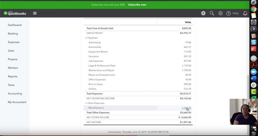 Now let’s go back to the main profit and loss report and see how ambiguity can make your life a little tougher than it needs to be. Have a look at the figure below. You’ll see that we have an account called “miscellaneous” with $2,666 in it. Your accounting system isn’t just used to give you a bottom line at the end of the year – it’s meant to aid your business decisions. You as a business owner will be far more successful if you can infer and make good business decisions based on the information contained in your accounting system. Put your expenses in logical categories that are useful.