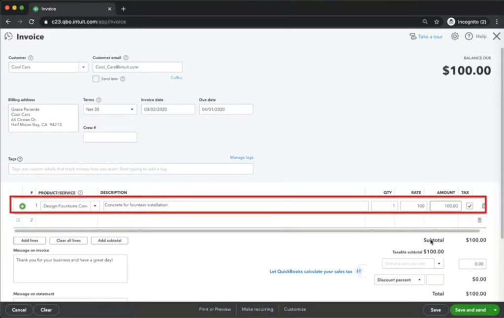 Now I’ll Save and Close this Invoice by click the green button in the lower right hand corner.