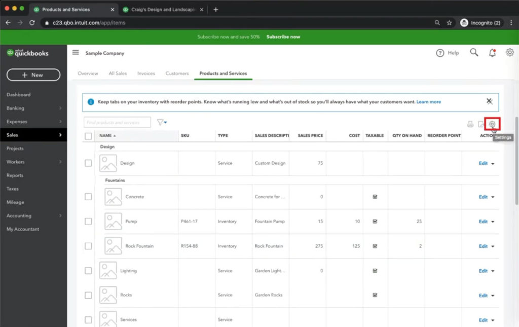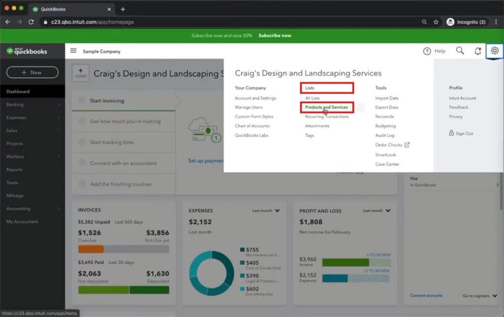 To get to this report click on the gear icon in the upper right corner. Select “Products and Services” in the Lists column.