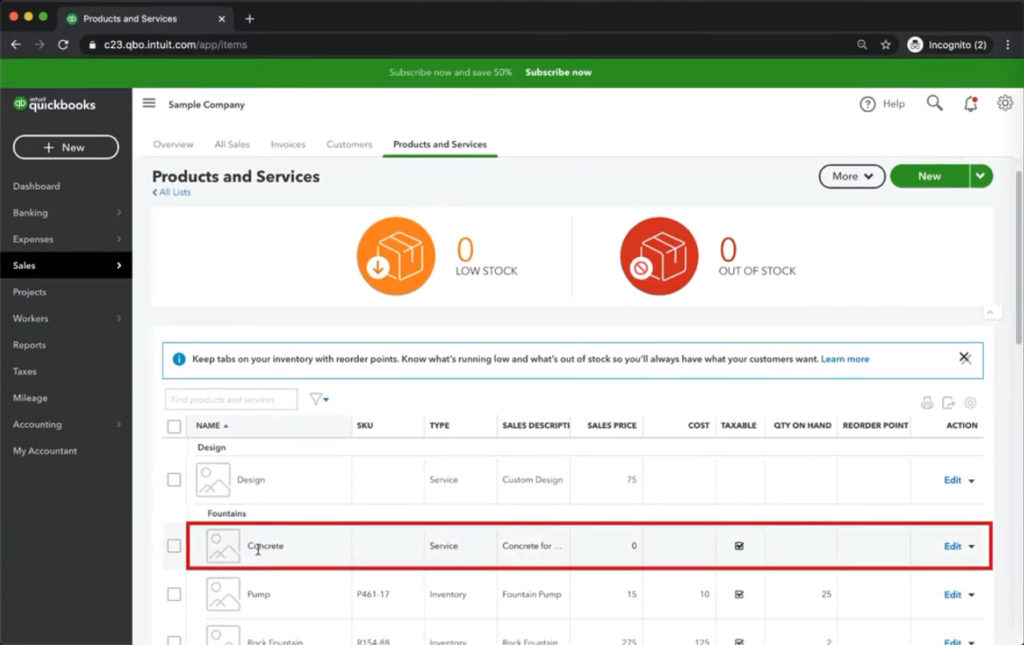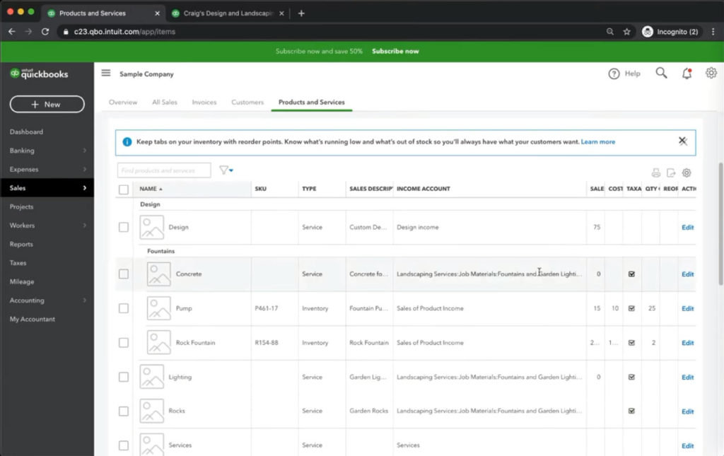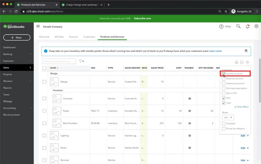 Let’s go back to the Products and Services list and I’ll show you some tips and tricks for using it.