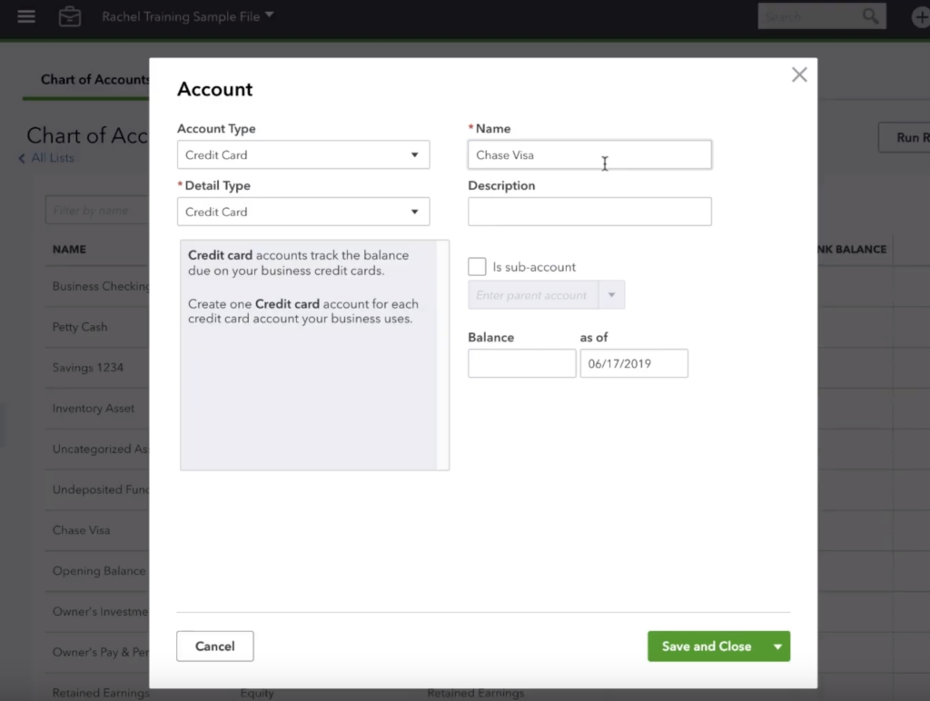 In this blogpost, I’m going to go over the required steps to rename an account in the Chart of Accounts. The scenario we will be discussing is one in which we are adding a credit card and need to add the last 4 digits of our existing credit card to account name in order to be able to identify each one individually.