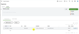 You can click the gear in the upper right-hand corner. Then search for McDonald’s and it shows the Journal Entry in the list of transactions it brings back. But, you need to click on that Journal Entry to see the details of the transaction. It’s not very intuitive.